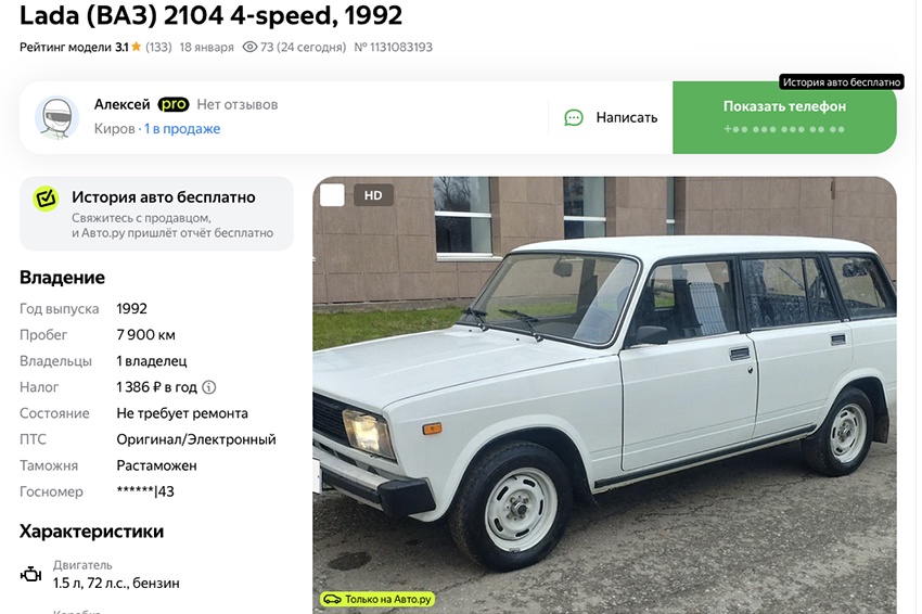 В России на продажу выставили практически новый ВАЗ-2104 за 600 тысяч рублей