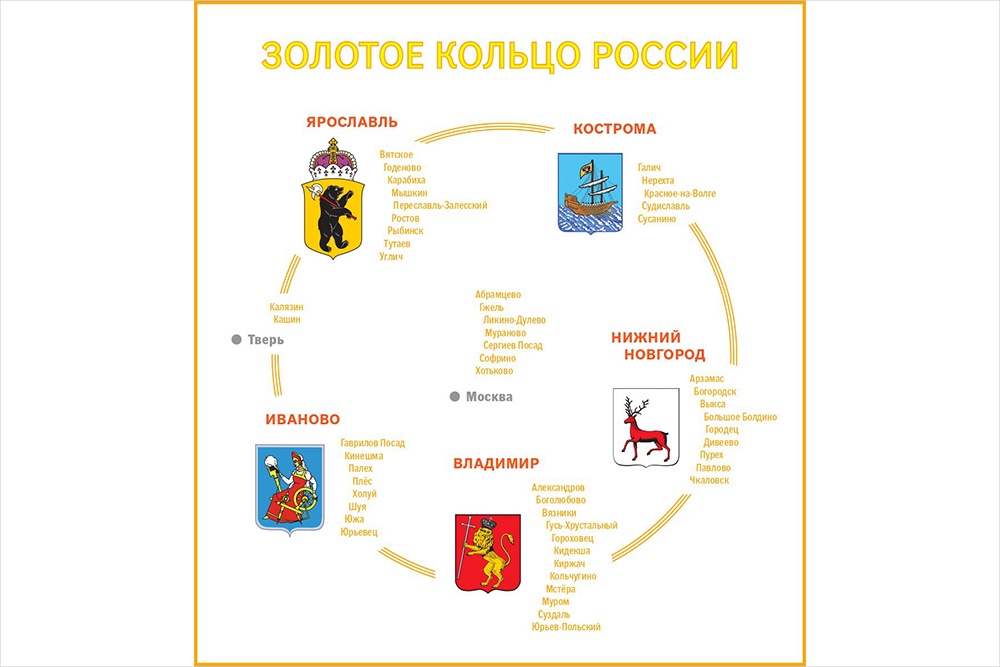 Золотое кольцо - старейший в России маршрут по древним городам Северо-Восточной Руси, в которых сохранились уникальные памятники истории и культуры. Название и идея принадлежит журналисту Юрию Бычкову, который опубликовал серию очерков о древнерусских городах в ноябре 1967 года.