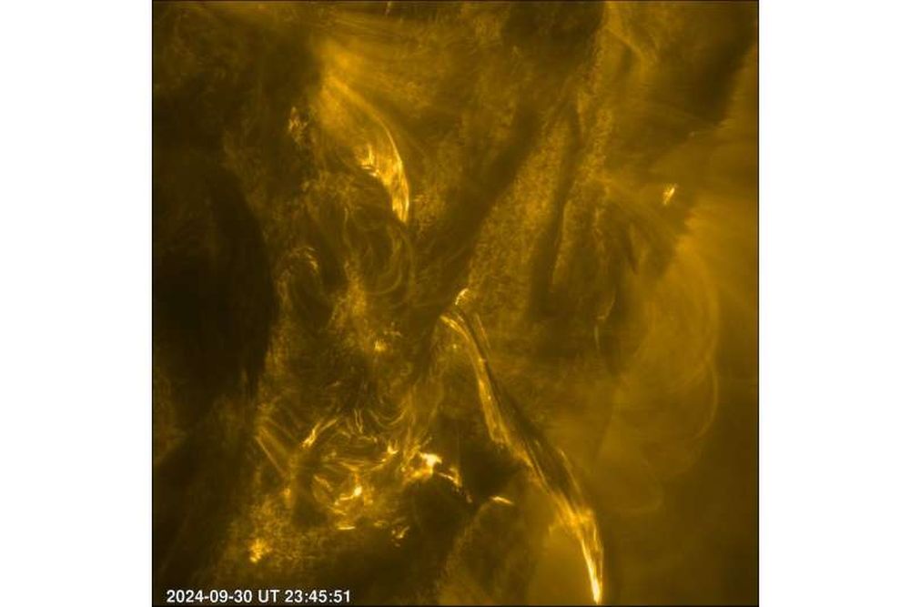 Разница лишь в том, что на Солнце вместо снега каскадно "падают" плотные сгустки раскалённой плазмы. Эти потоки удалось зафиксировать на снимках, сделанных во время сближения Solar Orbiter с Солнцем 30 сентября 2024 года. Камеры показали, как лентообразные структуры стремительно движутся вниз через солнечную атмосферу ещё до начала основной вспышки.