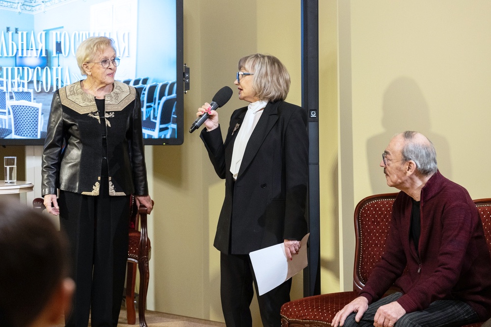 - Я думаю, что все это не случайно, потому что Алиса Бруновна родилась в этом театре, свои лучшие годы здесь провела, и поэтому очень символично, что встречу со зрителями она проводит в родном театре, в День артиста. В уютной домашней обстановке, - отметила художественный руководитель театра Лариса Луппиан. И не случайно, что именно она стала ведущей вечера - Луппиан работает в этом театре с 1974 года, как никто другой знает его историю, ученица Игоря Владимирова, он принимал ее в труппу, а с Алисой Фрейндлих у них были совместные спектакли.