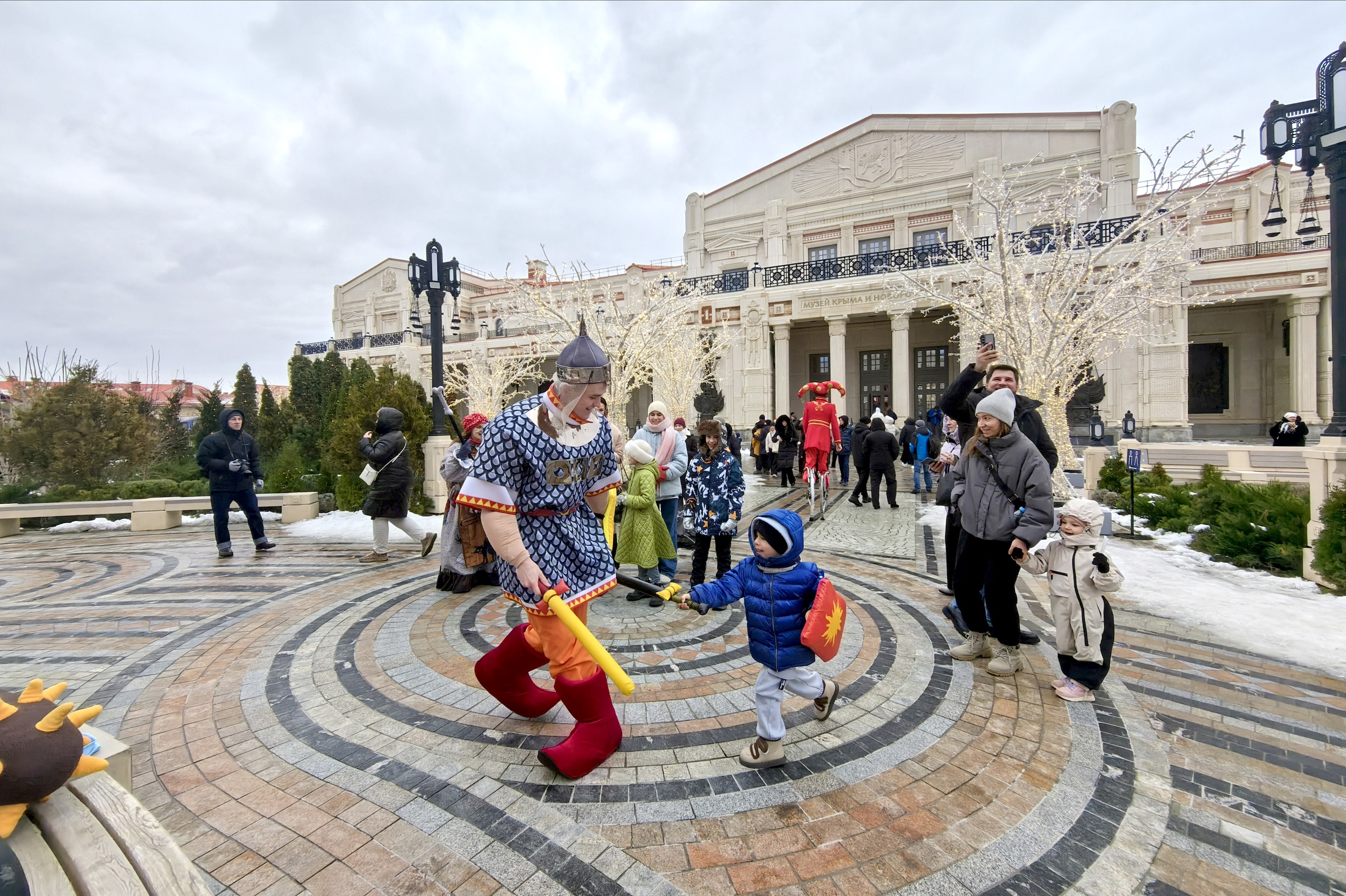 В Новый год здесь царила особенно праздничная атмосфера - с аниматорами в костюмах скоморохов, святых и древних воинов, было организовано катание на моторизованных "ладьях" и праздничные трапезы в обустроенных на античный манер закусочных. В масштабных же музейных пространствах с подкованными гидами и интерактивными программами можно "залипнуть" буквально на целый день. Особенностью этого года стало просто-таки невероятное количество туристов. Гостей было настолько много, что огромные парковочные территории не смогли принять весь поток машин. Нам удалось запарковаться лишь во дворах близлежащих домов, да и то - с трудом.