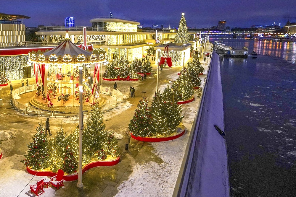 Другой пример - Пушкинская набережная в парке Горького. Если вы давно на ней не были, то сильно удивитесь - там построили шесть многофункциональных павильонов, на кровлях которых оборудовали смотровые площадки. Сейчас весь комплекс выглядит как круизный лайнер, сияющий огнями в вечернее время. До конца января на набережной проходит праздничная ярмарка, где можно посетить красочную зону с керлингом и хоккеем, активные зимние игры и аттракцион-карусель.