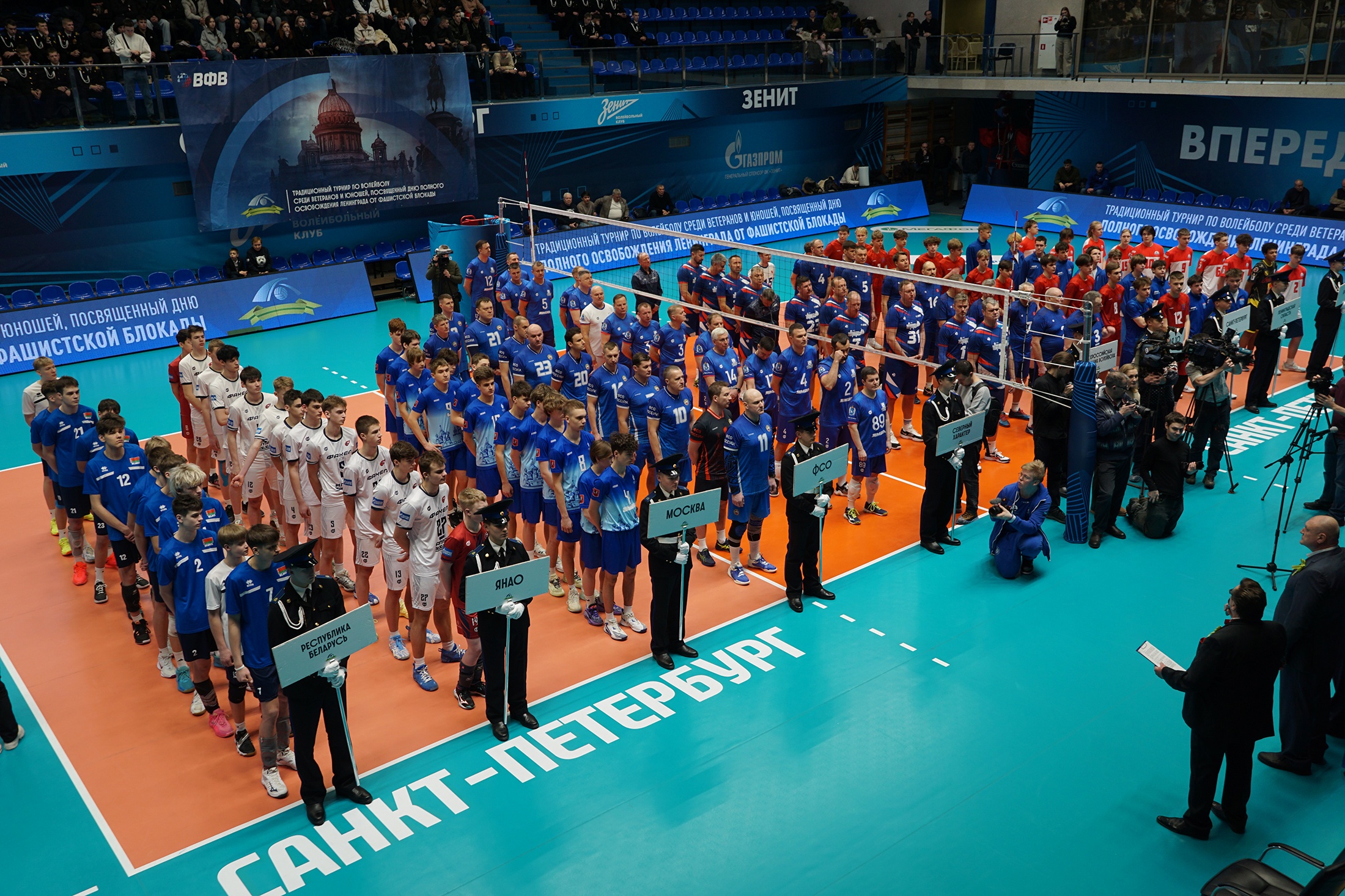 Он напомнил, что на турнире в качестве гостей присутствуют ветераны - жители блокадного Ленинграда, которые общаются с молодыми волейболистами, а затем вместе возлагают цветы к монументу "Родина-мать" на Пискаревском кладбище.