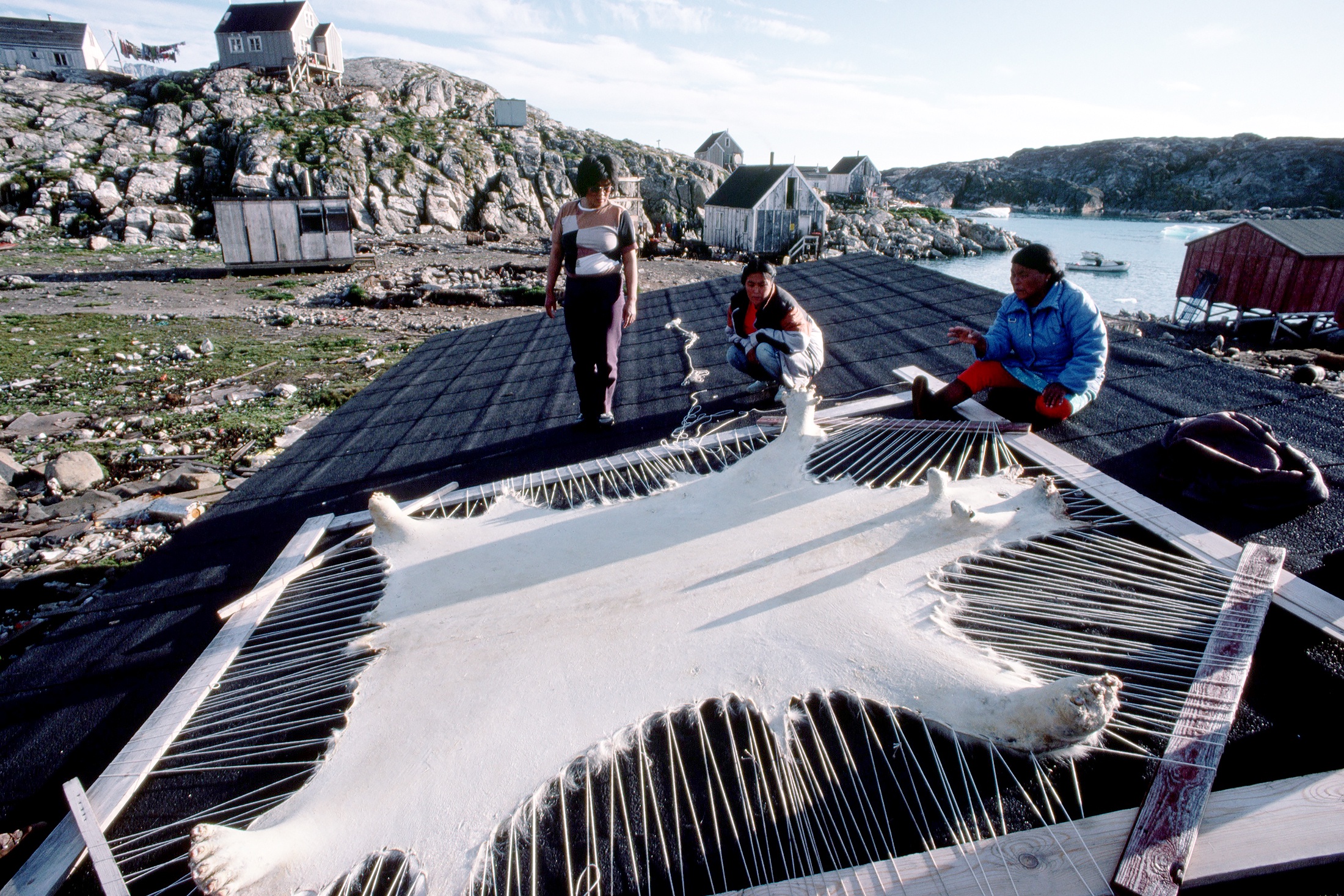 Эскимосу Олуику с женой удалось застрелить огромного белого медведя, и все дни, пока мы там жили, они не спеша сдирали с него шкуру и постоянно уговаривали нас ее купить.