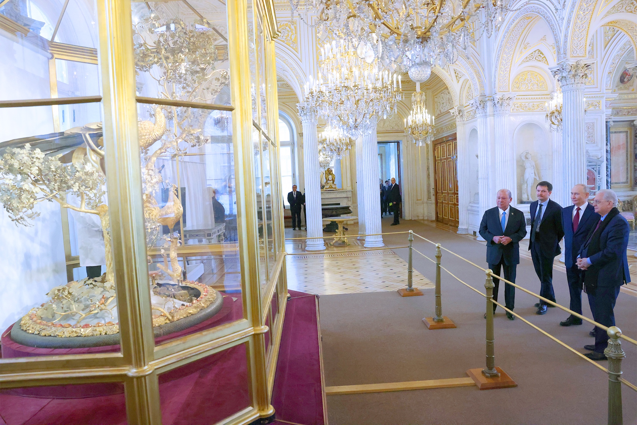 Прежде чем уехать из музея, султан Ибрагим оставил запись в книге почетных гостей. Путин проводил его до выхода. Лидеры обменялись рукопожатием и обняли друг друга.