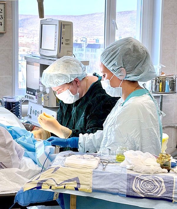 Об интервью удалось договориться не сразу, но в итоге руководство диспансера откликнулось, Любовь Михайловна согласилась, и я отправился за девять часовых поясов от Москвы, чтобы, предварительно облачившись в стерильную спецодежду, зайти в едва ли не единственную в России операционную с видом на действующие вулканы, а затем услышать рассказ не только о событиях полугодовой давности, но и о сейсмоустойчивых людях, живущих там, где начинается Родина.