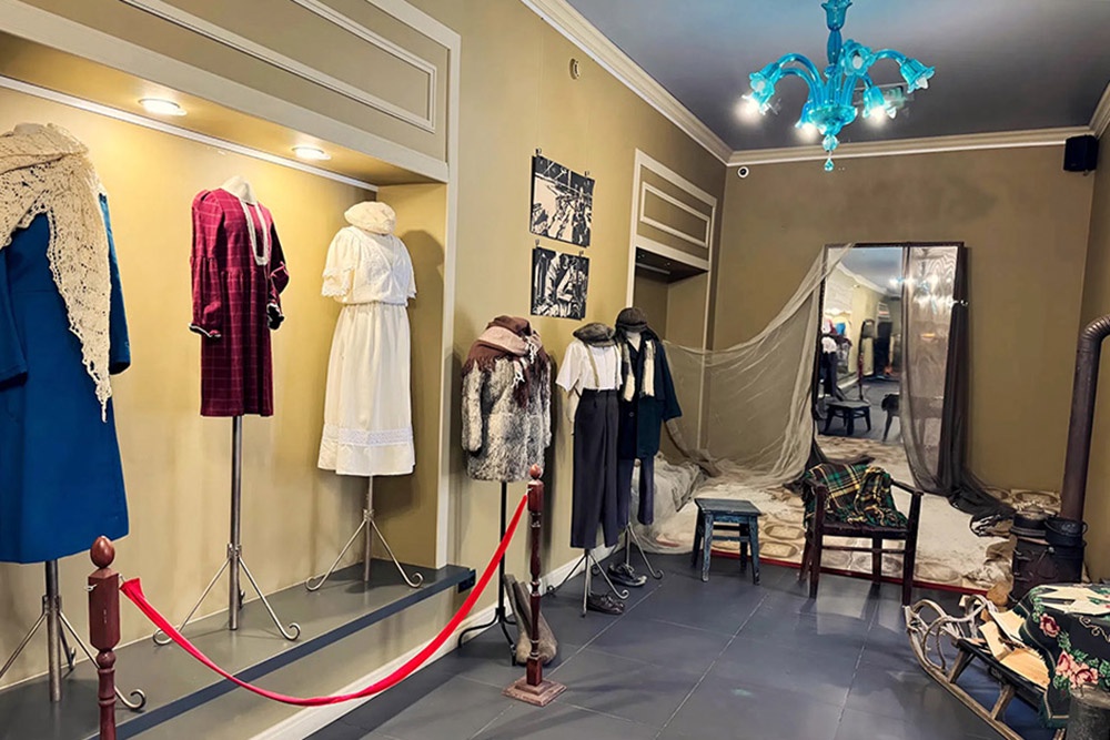 На выставке представлены оригинальные костюмы и реквизит, использованный в сериале "Осталась одна Таня", подлинные блокадные карточки, артефакты эпохи. Можно побывать в воссозданной комнате советской семьи блокадного времени с буржуйкой и предметами быта.