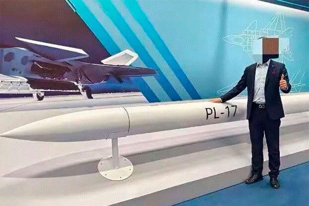 В социальных сетях появилось первое фото выставочного макета новейшей китайской ракеты "воздух-воздух" PL-17 большой дальности.