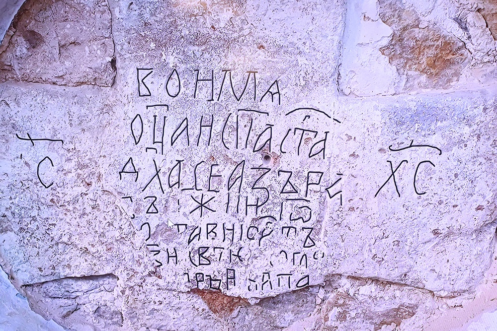 В дни нашей командировки в музее проходила научная конференция. Доцент Псковского университета, кандидат наук Юлия Колпакова рассказывала о расшифровке надписи на каменном кресте, вмурованном в стену местного Никольского собора. По старославянским полустершимся буквам ученые восстановили имя: Стефан. Видимо, умер молодым. Видимо, сын того, кто ставил крест. Видимо, был знатен и достоин. На конференции во втором ряду сидит батюшка, настоятель собора. Музейщики сразу дружно просят его: давайте повесим рядом с крестом "расшифровку" надписи.