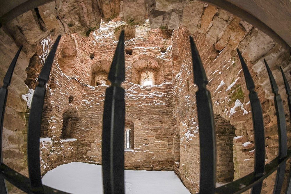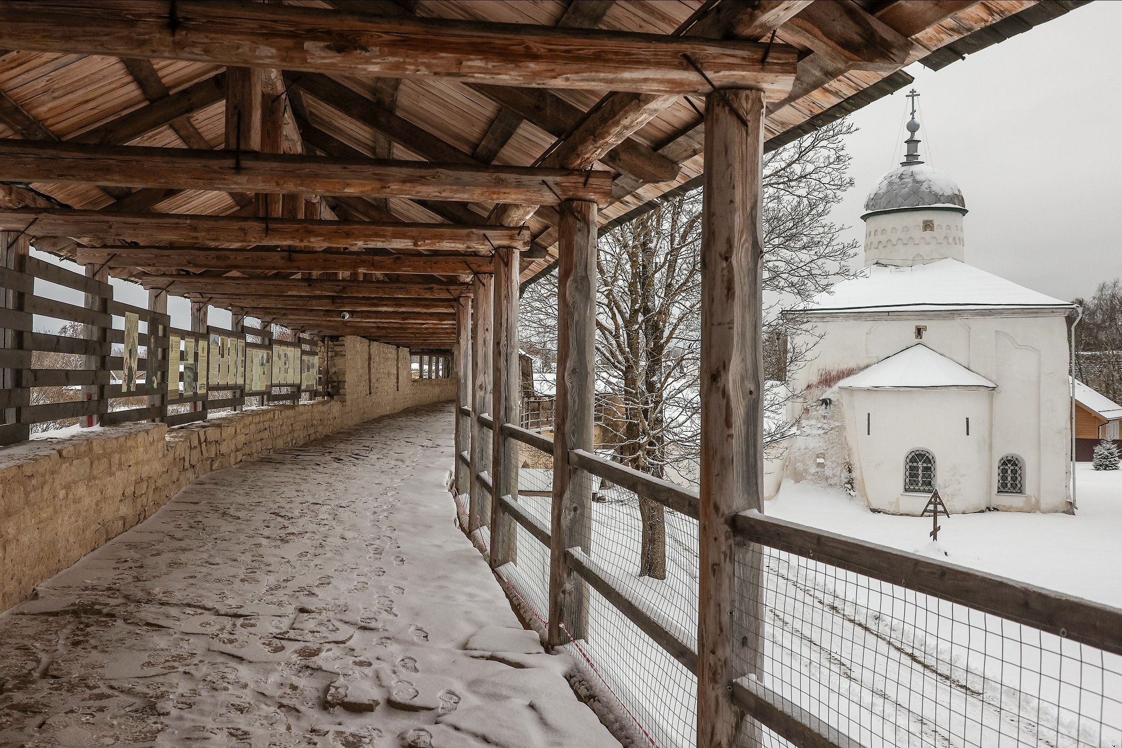 Музейный дворник Александр, чистящий вокруг нее снег, жалуется нам, что у него во дворе вымерз виноград. "Виноград? В Псковской области?!" - "Тут земля особенная, железа много".