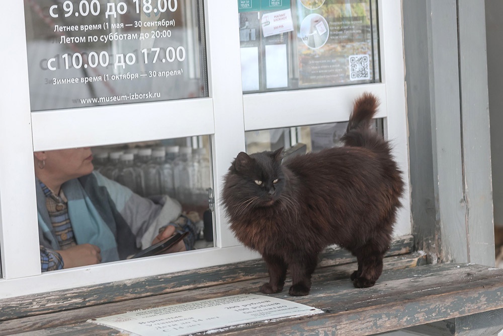 Сейчас в центре Изборска сидят коты и ждут фотографов. Завсегдатаи музейного квартала, они одержимы желанием позировать.