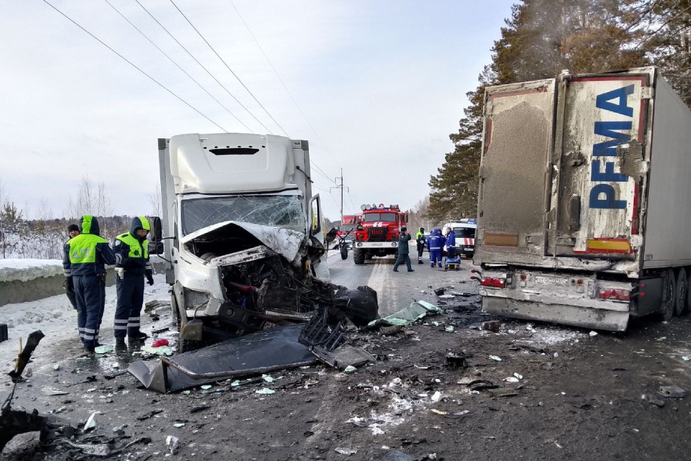 По данным Госавтоинспекции региона, фура Volvo выехала на встречную полосу и по касательной задела Lada Granta, столкнулась с большегрузом "КамАЗ" и Audi А6, а после - лоб в лоб врезалась в "Газель" NEXT. В итоге фура съехала в кювет и ударилась в дерево.