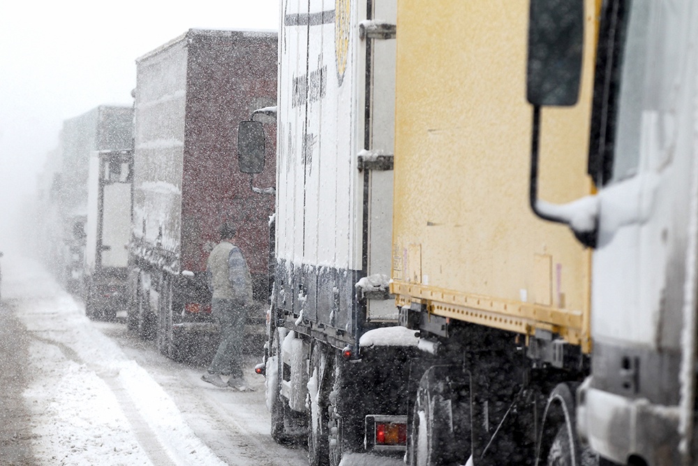 "Стоим по шесть часов": Застрявшие в снегу фуры блокировали дороги в Подмосковье