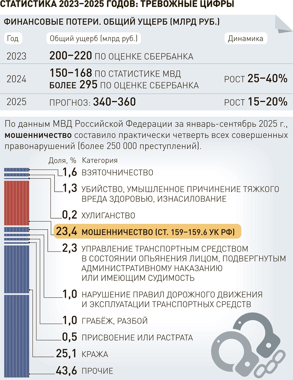 По данным МВД России за январь - сентябрь2025 года, мошенничество составило практически четверть всех совершенных правонарушений - более 250 000 преступлений.