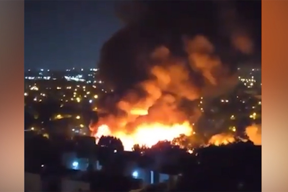 С другого ракурса последствия взрыва уже снимали очевидцы. На кадрах запечатлен пожар в квартале, куда уже приехали полиция и пожарные. Огонь бушует на фоне довольно сильного ветра.