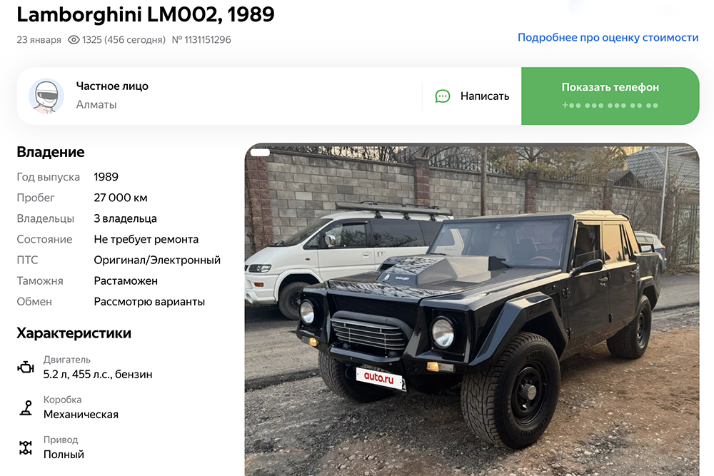 Легендарный Lamborghini LM002 из "Бригады" выставили на продажу