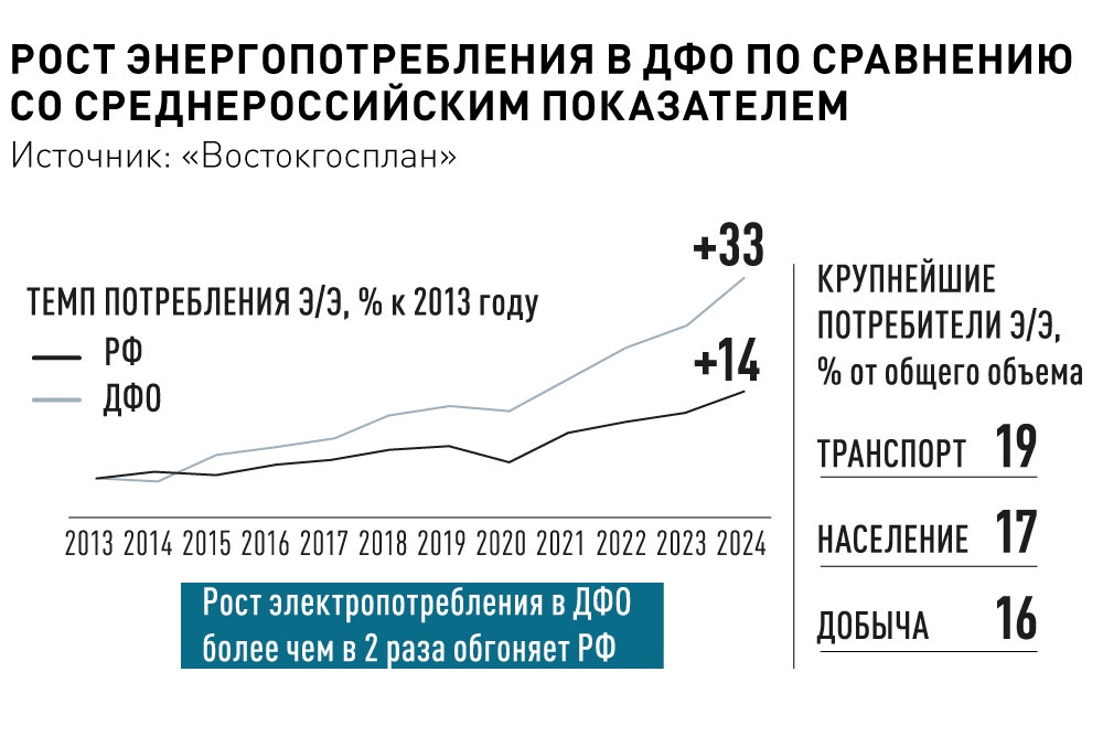 Глава Минвостокразвития РФ Алексей Чекунков констатировал, что стремительное экономическое развитие Дальнего Востока обусловило опережающий рост энергопотребления - в два раза быстрее, чем в среднем по стране. По словам министра, дефицит энергомощности в регионе составит 3,3 ГВт уже к 2030 году. Некоторые эксперты считают, что нехватка и вовсе может достичь 5 ГВт. На этом фоне строительство новых АЭС на Дальнем Востоке названо ключевой мерой по развитию энергетики.