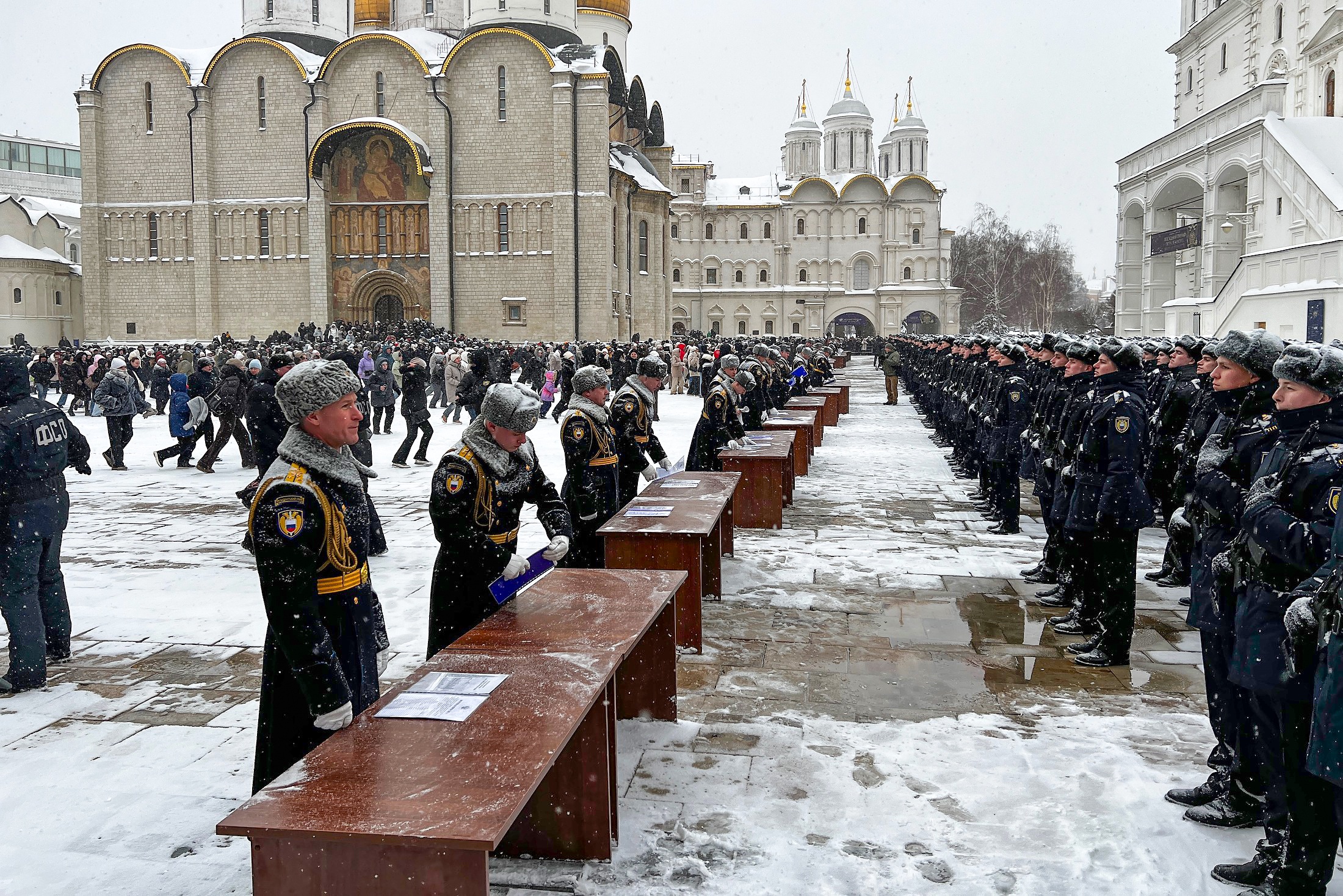 Военная присяга в сердце Кремля - событие достаточно традиционное и регулярное, но именно эта запомнится особо. Всем: ребятам, призванным в полк из 42 российских регионов, их родным и близким, и вообще всем тем, кто зримо и незримо обеспечивал проведение этой церемонии. В погодных условиях, близких к экстремальным.
