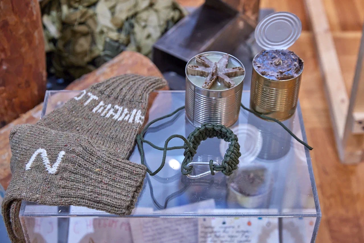 В залах показаны и мемориальные вещи сотрудников пожарно-спасательной части № 2 Натана Мардахаева, Романа Скворцова и Ивана Бабынина, которые первыми прибыли к месту трагедии 12 мая 2024 года - тогда в Белгороде после обстрелов ВСУ обрушился десятиэтажный подъезд жилого дома. Люди, жильцы 40 квартир, оказались погребены под завалами - оттуда их доставали спасатели.