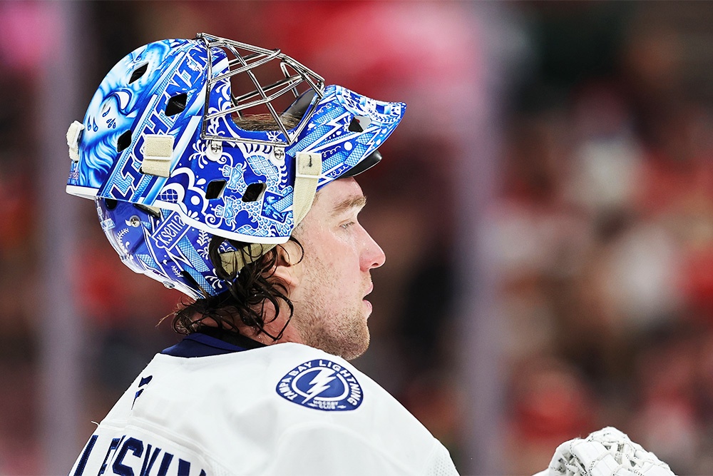 Новый шлем, созданный для игры под открытым небом, стал отражением личности самого вратаря и данью уважения российской культуре. Даже название команды спортсмен попросил нанести на русском языке - "Тампа Бэй Молнии".