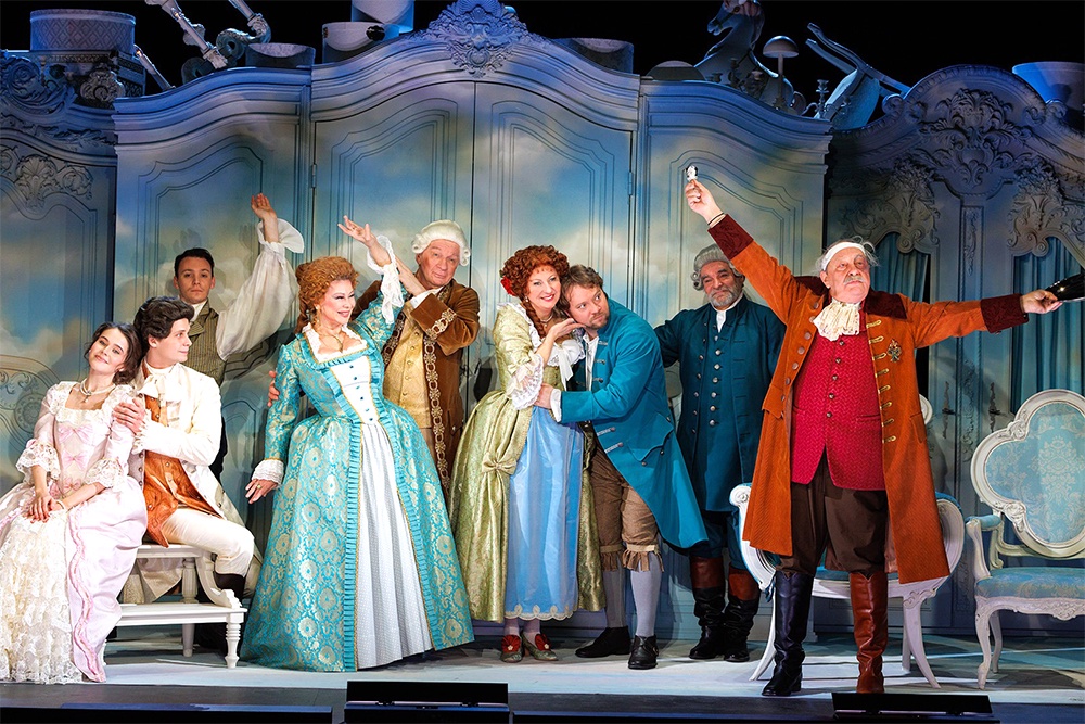 Сценография Марии Шуплецовой здесь сочетает в себе и красоту екатерининских дворцов, и какую-то особую домашнюю уютность, граничащую с пасторалью. Весь дом Собриных - сплошь белые шкафы, на которые проецируется небесная синева. И в этом идиллическом шатре, в изящном антураже вся прелестная игра актеров и актрис и весь нравоучительный конфликт - на радость зрителям - летит в спектакле и вычурно, как в старину любили, и нескучно, как предпочитаем мы теперь.