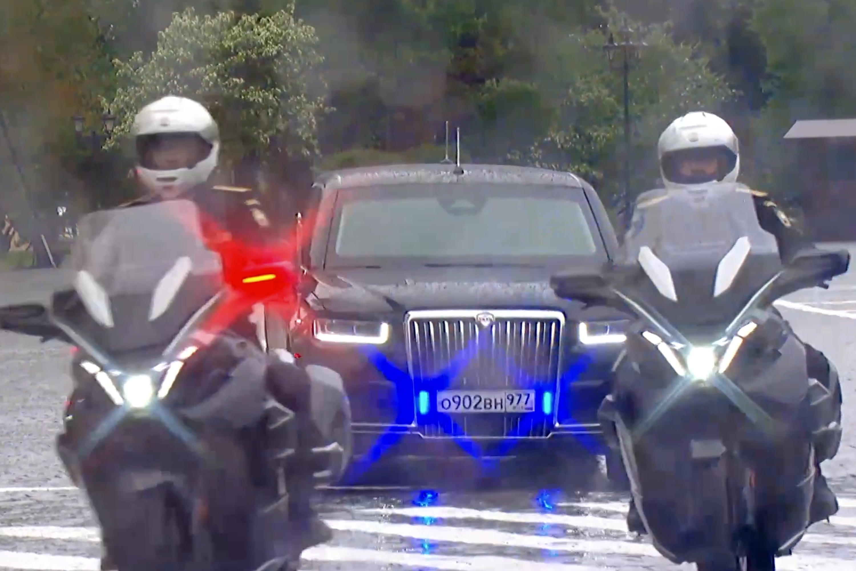 Электромотоциклы Aurus Merlon сопровождают кортеж президента РФ. / Ruptly/ RG.RU