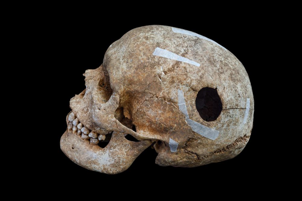 На черепной коробке отмечено аккуратное трепанационное отверстие - эллиптической формы, около трех сантиметров в диаметре, расположенное сбоку. Края разреза выглядят ровными, а на кости заметны признаки заживления, что означает: операцию провели при жизни, и пациент прожил после нее достаточно долго, чтобы началось сращивание.
