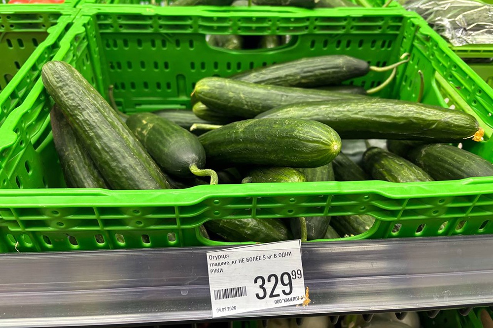 Сейчас в одной из популярных торговых сетей стоимость килограмма длинных гладкосортных огурцов составляет 329 рублей. Но есть и дороже. Любимые хозяйками среднего размера с пупырышками огурцы от местного тепличного комбината стоят 270 рублей за 460 граммов (около 587 рублей за кило), а полкило завезенных из Казахстана - 270 рублей (540 за кило).