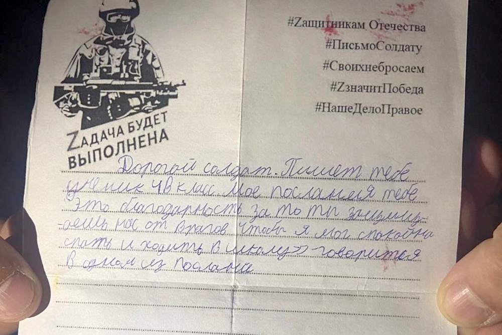 "Дорогой солдат, пишет тебе ученик 4В класса. Мое послание тебе - это благодарность за то, что ты защищаешь нас от врагов, чтобы я мог спокойно спать и ходить в школу", - такими словами начал школьник свое письмо на фронт. И на них оно фактически и заканчивается. Следующее предложение загадочным образом обрывается. Почему? Об этом оставалось лишь догадываться Александру Левакову, в руки которого попала эта весточка, дополненная детским рисунком.