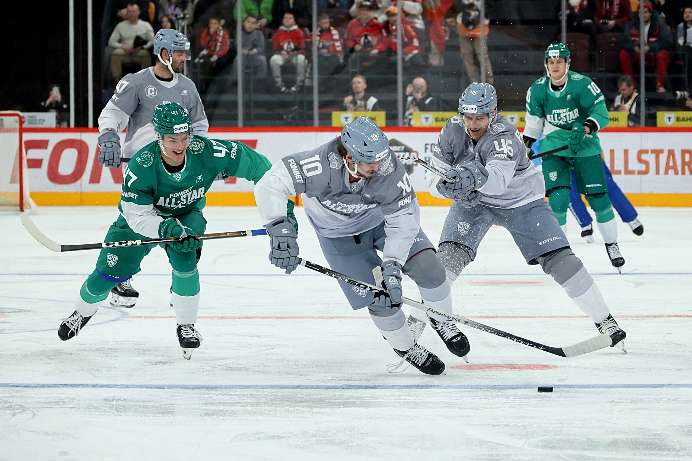 Победу в итоге праздновала сборная Урала, в которой дублем отметился Канцеров: он забросил первую и последнюю девятую шайбу своей команды - 9:6.