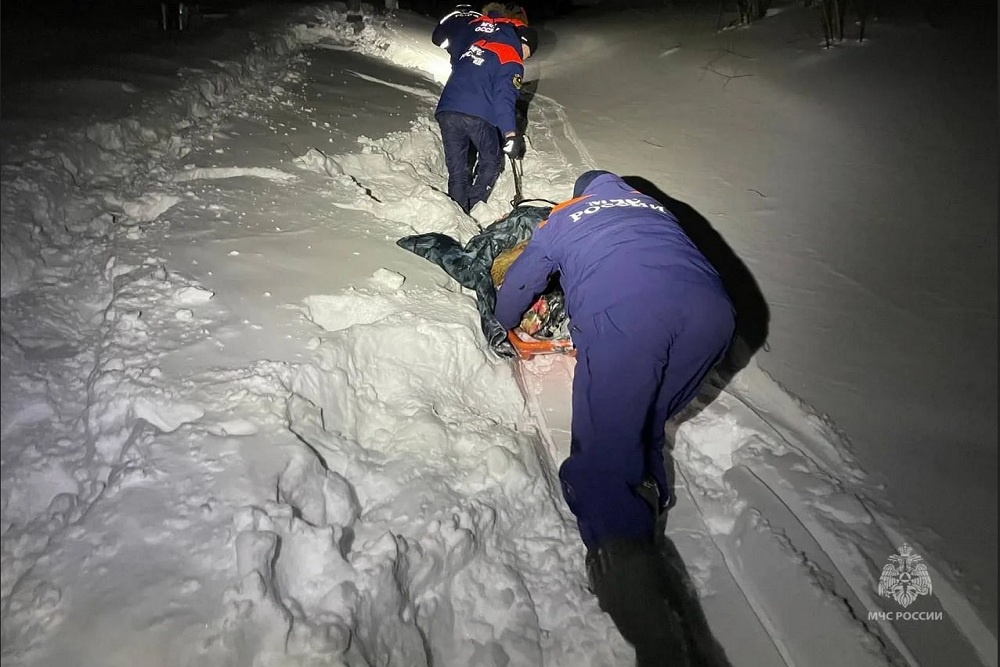 На помощь пенсионеру пришли сотрудники МЧС России и медики. Спасатели с помощью акьи (спасательных саней) перевезли его около 300 метров по крутому склону нерасчищенной дороги до кареты скорой.