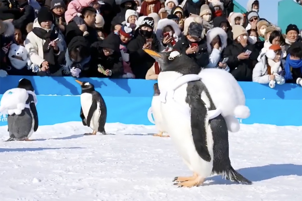 Традиционный парад пингвинов прошел в китайском Харбине, это сняли на видео