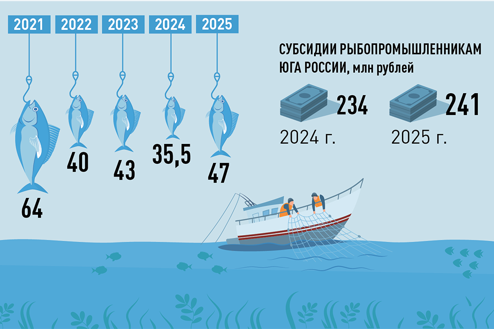 Чтобы помочь отрасли в кризисный период, правительство РФ направило рыбопромышленникам Азово-Черноморского бассейна субсидии. В 2024 году сумма составила 234 миллиона рублей, в 2025-м - 241 миллион. Средства распределялись в соответствии с объемами вылова, основную часть получили Севастополь и Республика Крым. Также помощь была оказана рыболовам Краснодарского края, а в 2024 году - еще и ДНР, Запорожской и Херсонской областей.