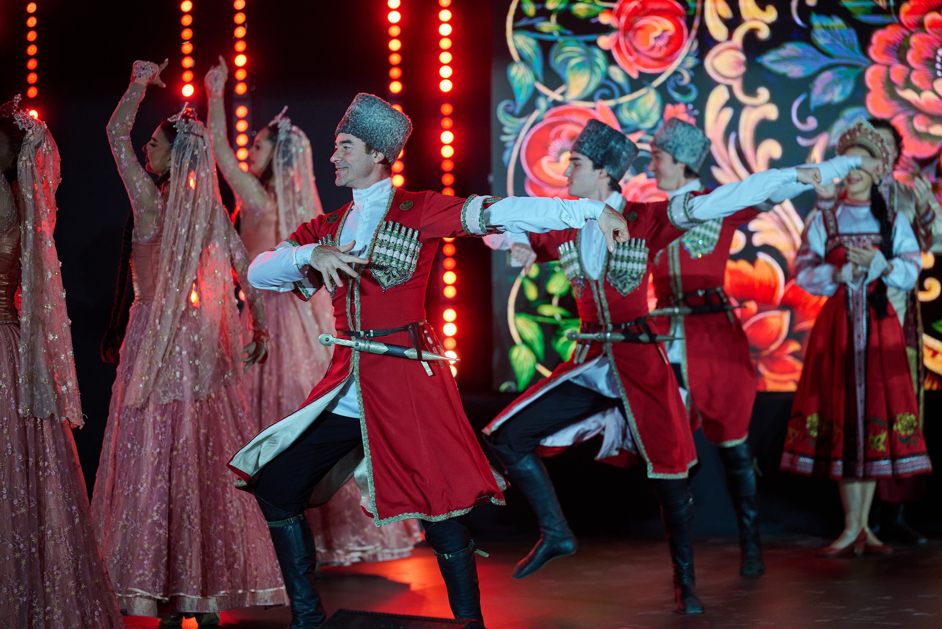 На вечере открытия русская культура была представлена во всем ее многообразии. Коллектив из Республики Татарстан представил татарские народные танцы и песни, ансамбль танца "Лезгинка" из Дагестана продемонстрировал динамичные выступления, отражающие горные традиции, коллектив из Калмыкии познакомил публику с танцами степных народов, а Московский народный хор исполнил традиционные русские песни.