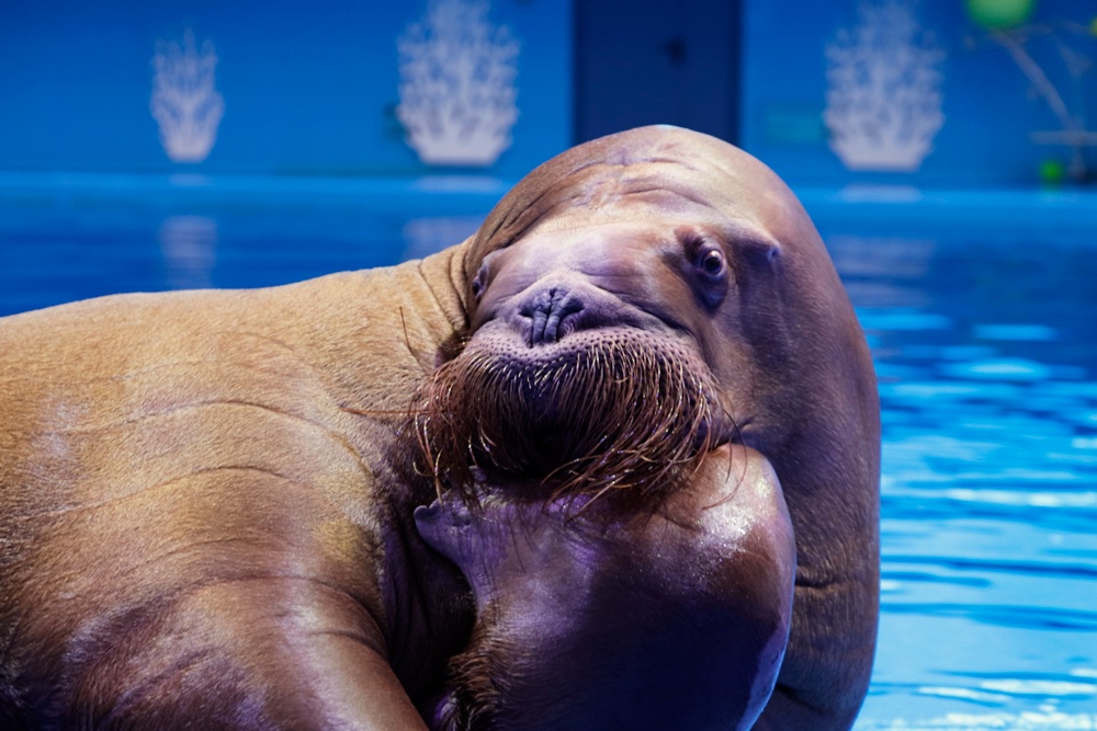 Довольная вниманием и подарком, моржиха послала своему далекому другу воздушный поцелуй.