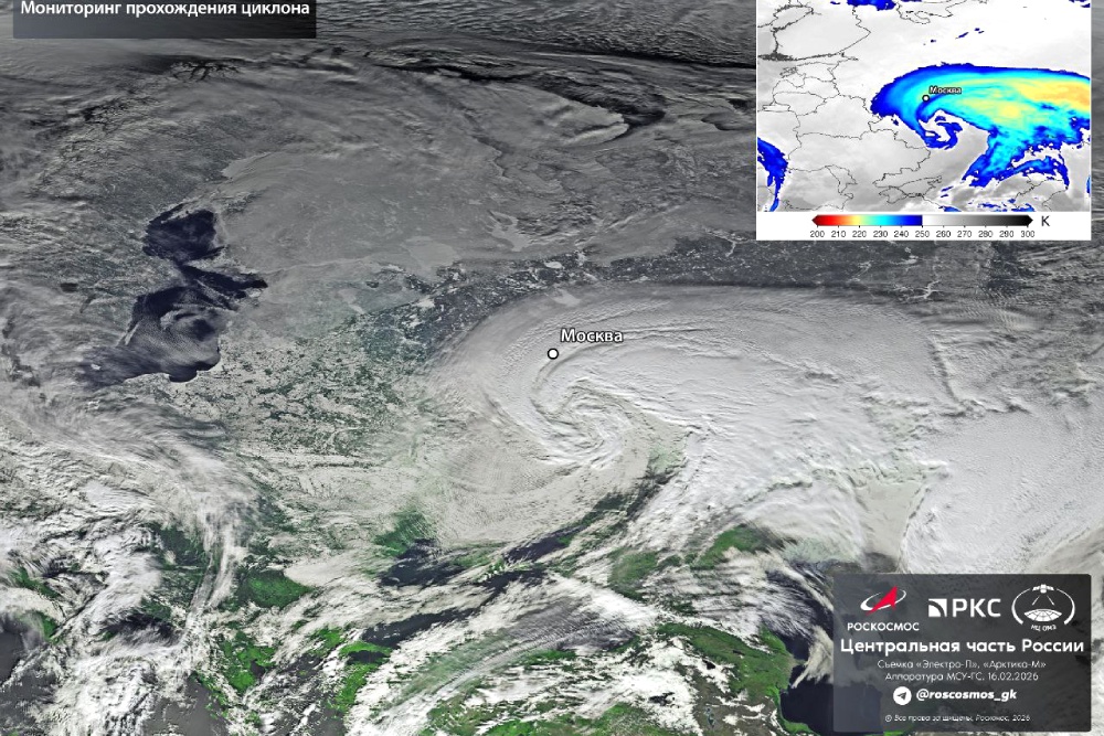 Напомним, на прошлой неделе "Роскосмос" также публиковал спутниковый снимок снежного циклона, который тогда принес в Москву сильный снегопад.