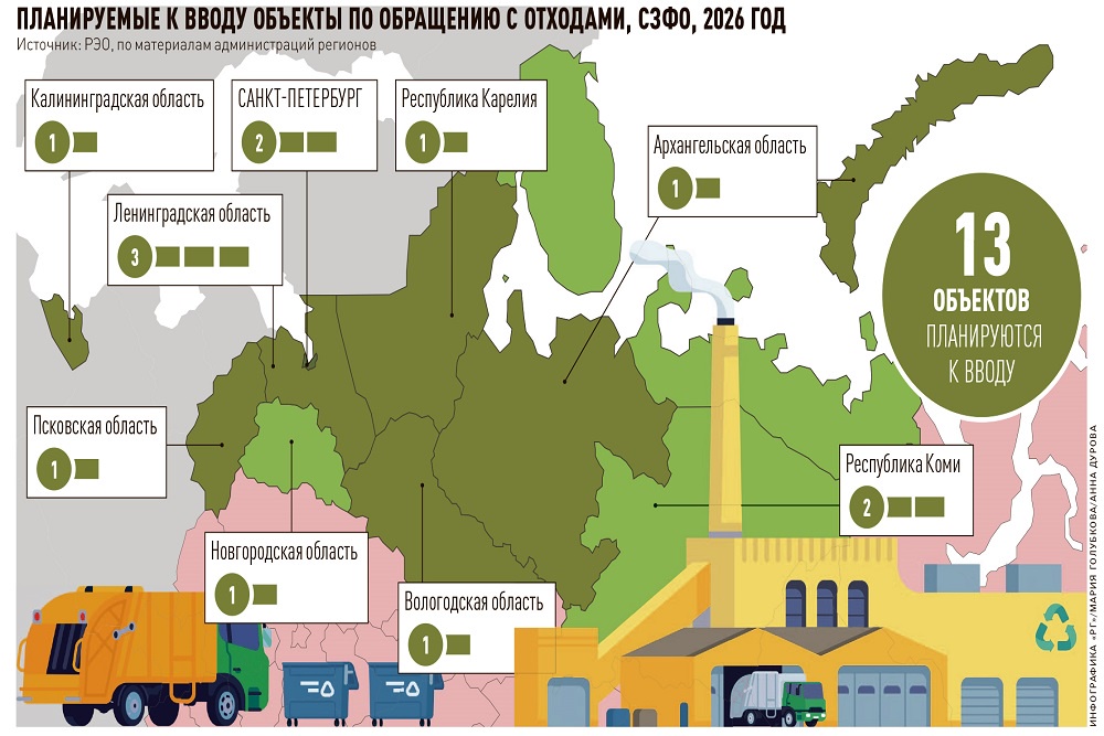 А в соседней с Поморьем Республике Коми в этом году планируется ввод в эксплуатацию двух новых мусоросортировочных линий: в Сыктывкаре (мощностью 80 тысяч тонн в год) и Печоре (15 тысяч тонн в год). Плюс к этому заключены два концессионных соглашения на строительство комплексов в Воркуте и близ Сосногорска. До 2030 года, как сообщили в минприроды Коми, в республике планируется возвести еще четыре мусоросортировочных комплекса: в Вуктыле, Инте, Усинске и Удорском районе.
