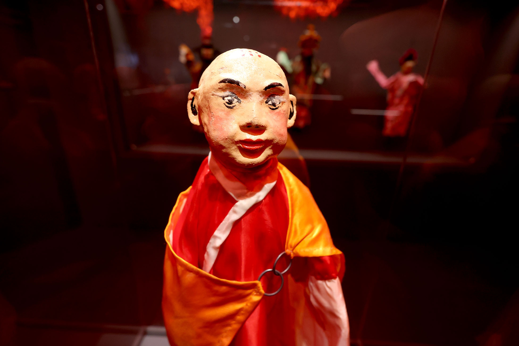 Мистерия, которая разворачивалась на вечерних улицах Пекина, продолжалась в народных представлениях Пекинской оперы, театра марионеток, театра теней. Театральная часть экспозиции, которая стала сердцем третьего раздела выставки, - одна из самых впечатляющих. Здесь, кстати, можно увидеть не только коллекцию, привезенную Сергеем Образцовым, но и современные маски персонажей пекинской оперы. Их можно примерить, почувствовать себя персонажем китайского романа "Путешествие на Запад".