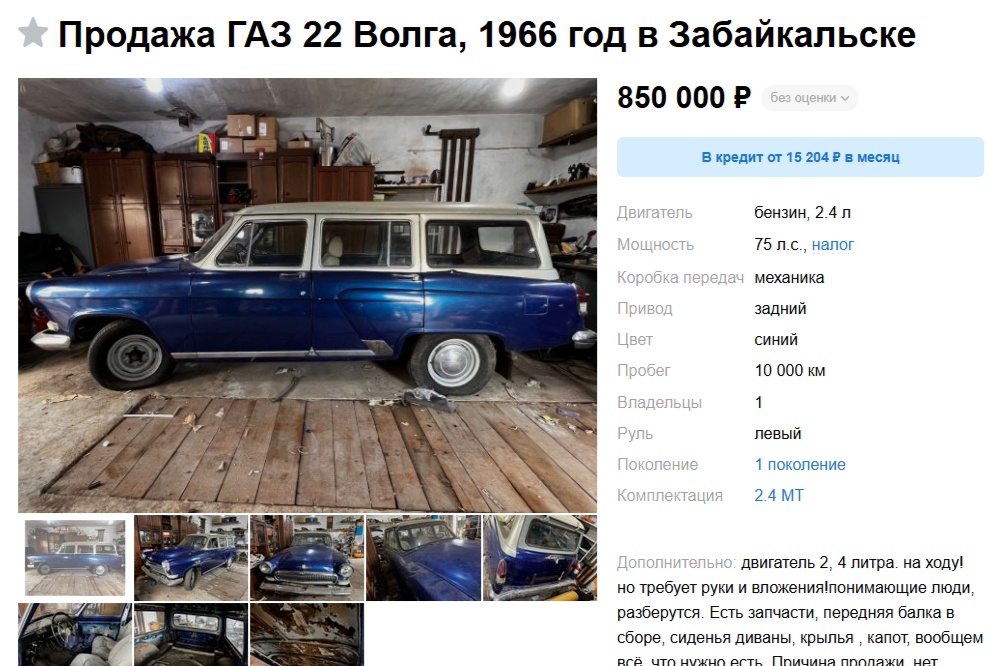 Редчайший универсал ГАЗ-22 "Волга" сняли с хранения и выставили на продажу в РФ