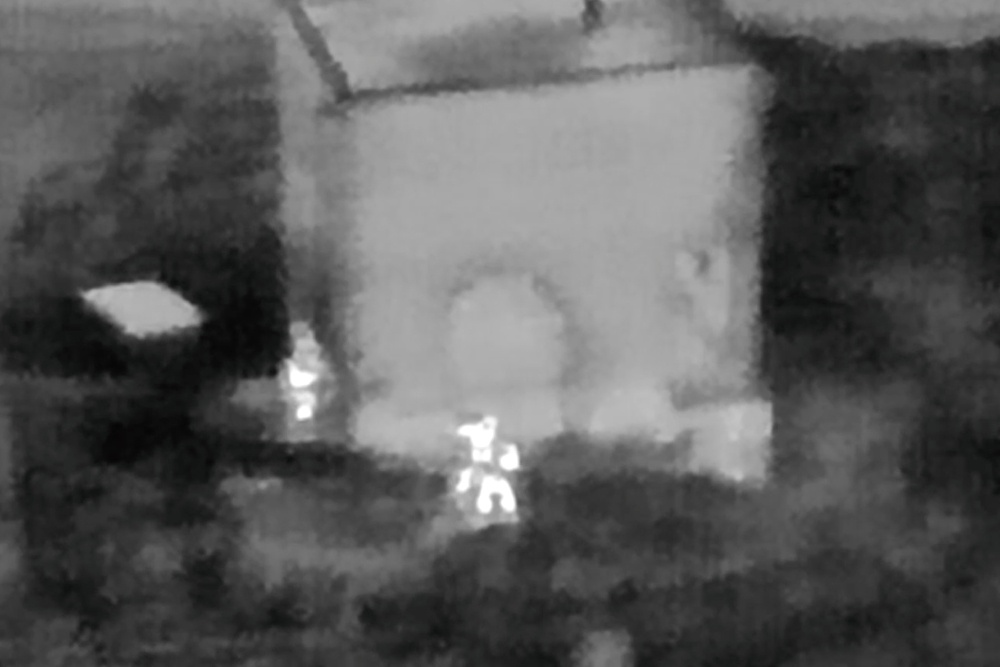 На ночных кадрах с тепловизора БПЛА видно, как двухэтажное заброшенное здание окружает спецназ ФСБ. Первым заходит сотрудник со щитом, далее видны вспышки от выстрелов. На предложение сдаться предполагаемый террорист открыл огонь из пистолета и был нейтрализован ответным огнем.