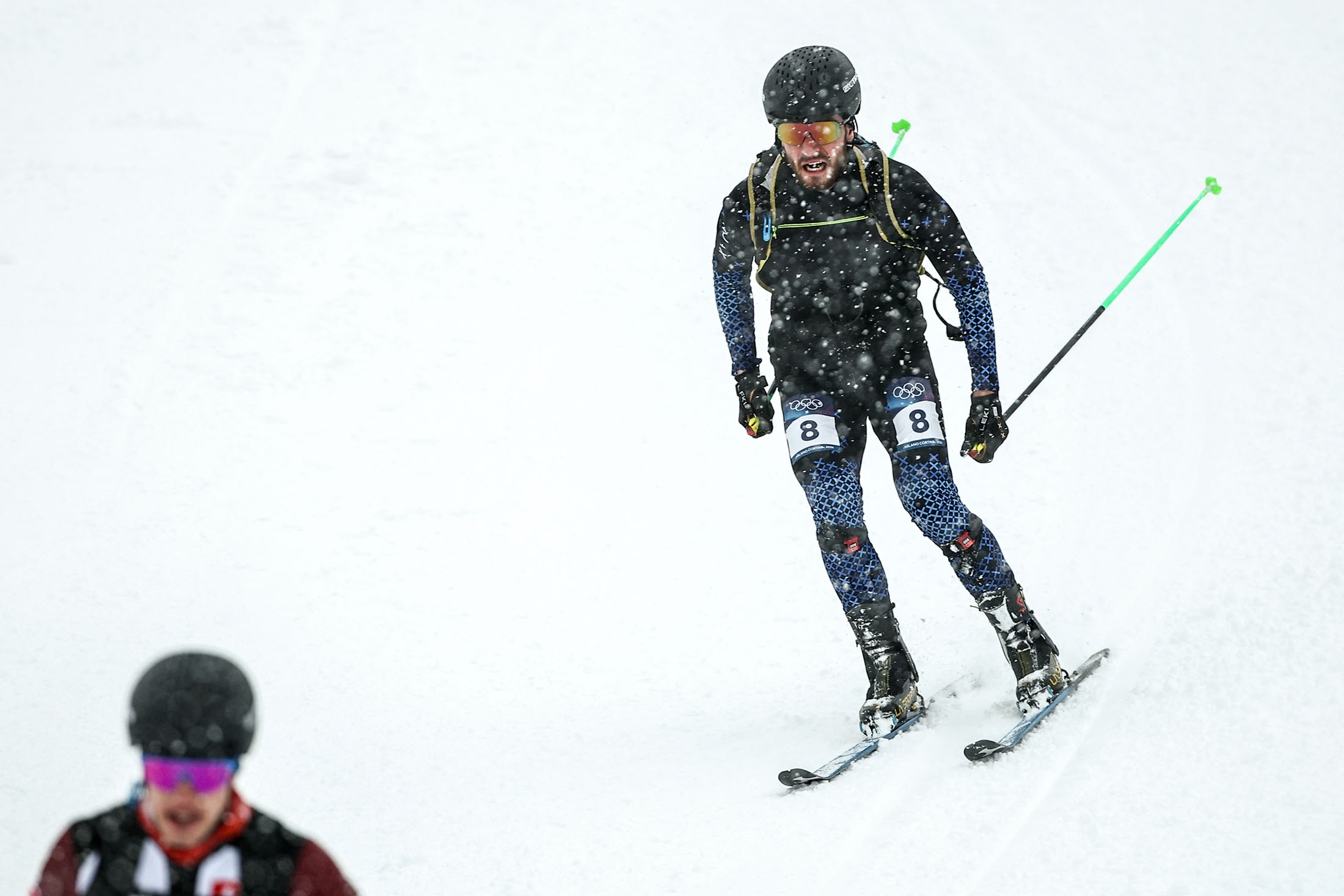 Этот вид спорта дебютировал на Играх-2026. В кадры, показанные на сессии, вошли фрагменты с участием россиянина и других призеров спринта.