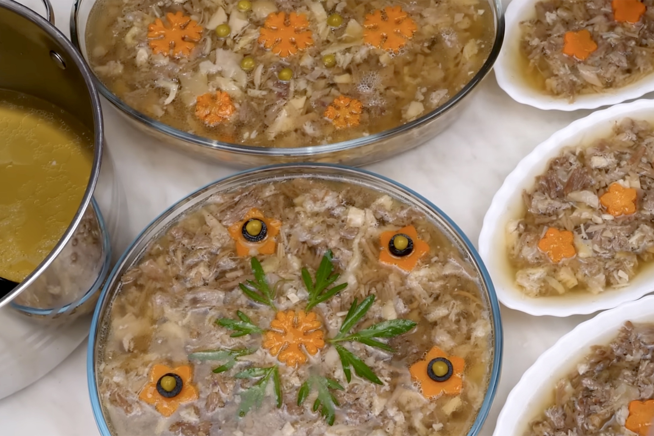 Холодец - блюдо русской кухни. Готовится путем длительного вываривания мясных продуктов с последующим охлаждением до желеобразного состояния.