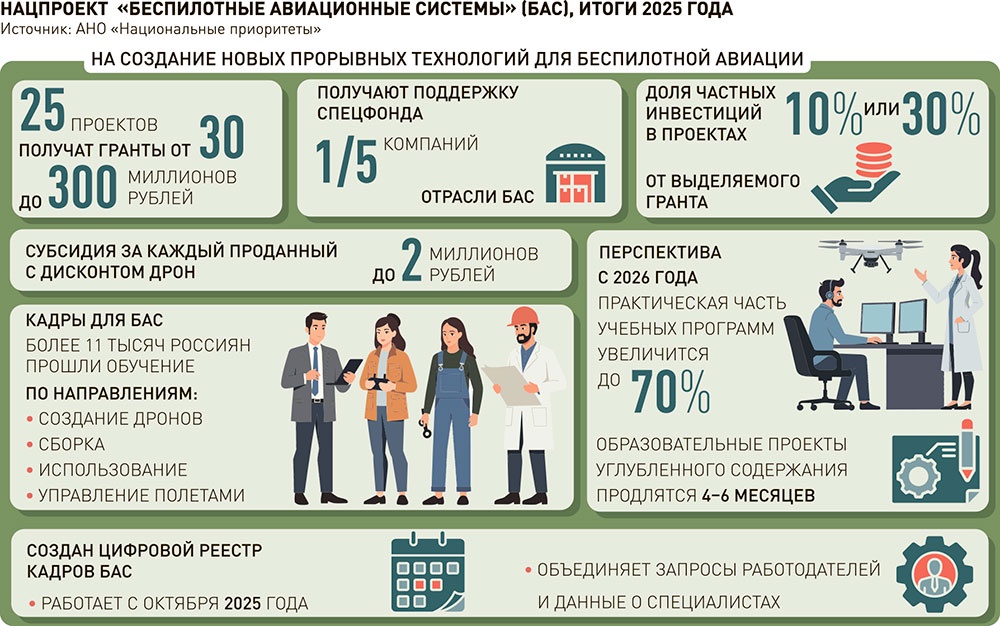 К 2030 году доля своих БАС, в том числе самолетов, вертолетов, мультироторов, составит на нашем рынке 70 процентов. Такова одна из целей нацпроекта "Беспилотные авиационные системы".