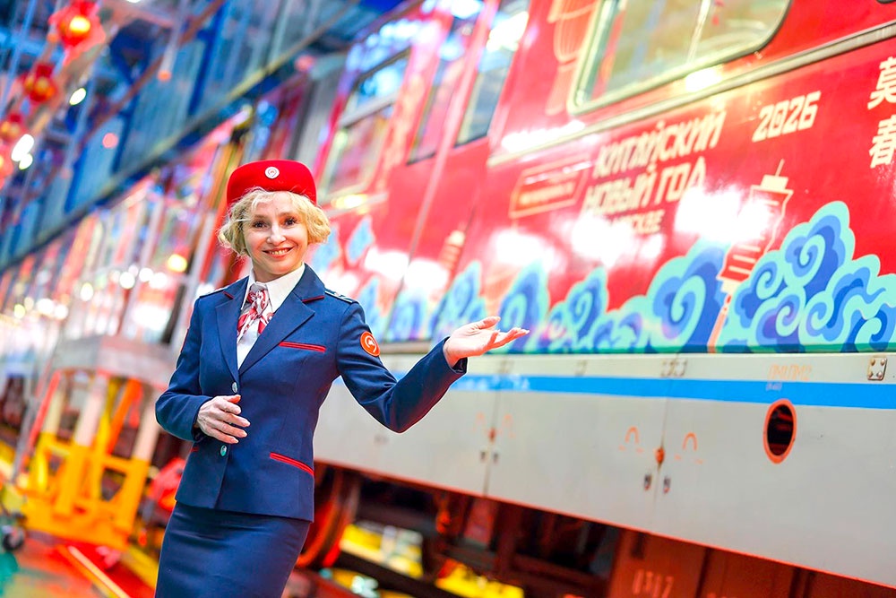 Наталья призналась, что хочет устроить съемку в тематическом поезде метро - он тоже посвящен китайскому Новому году. Запустили его в первый день праздника, 17 февраля, а курсирует состав по Арбатско-Покровской линии. Это ярко-красный поезд, украшенный красными и золотыми китайскими узорами - фонариками, лентами, облаками. Присутствуют в оформлении и огненные лошади. На стенах поезда - стихотворения о празднике на китайском языке начиная с 600-х годов нашей эры и их переводы на русский язык, а также фотографии празднования китайского Нового года в Москве прошлых лет.