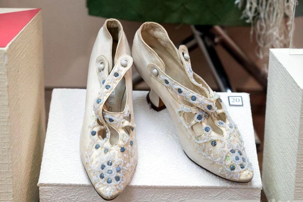 Вот купеческое шерстяное платье в пол, украшенное лентами и бисером. На плечах - мантилья. Вот нарядный костюм-пара городской казачки. Корсет, подчеркивающий женскую талию и украшенный кружевами. Роскошная шаль. Оригинальные кожаные лодочки и ботильоны. Судя по размерам, их хозяйки были довольно миниатюрными особами.