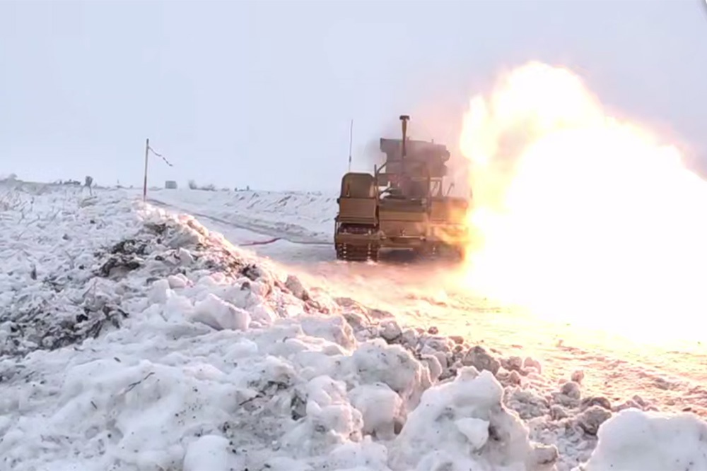 Появилось видео применения роботом "Курьер" новейшего огнемета "Сколия"