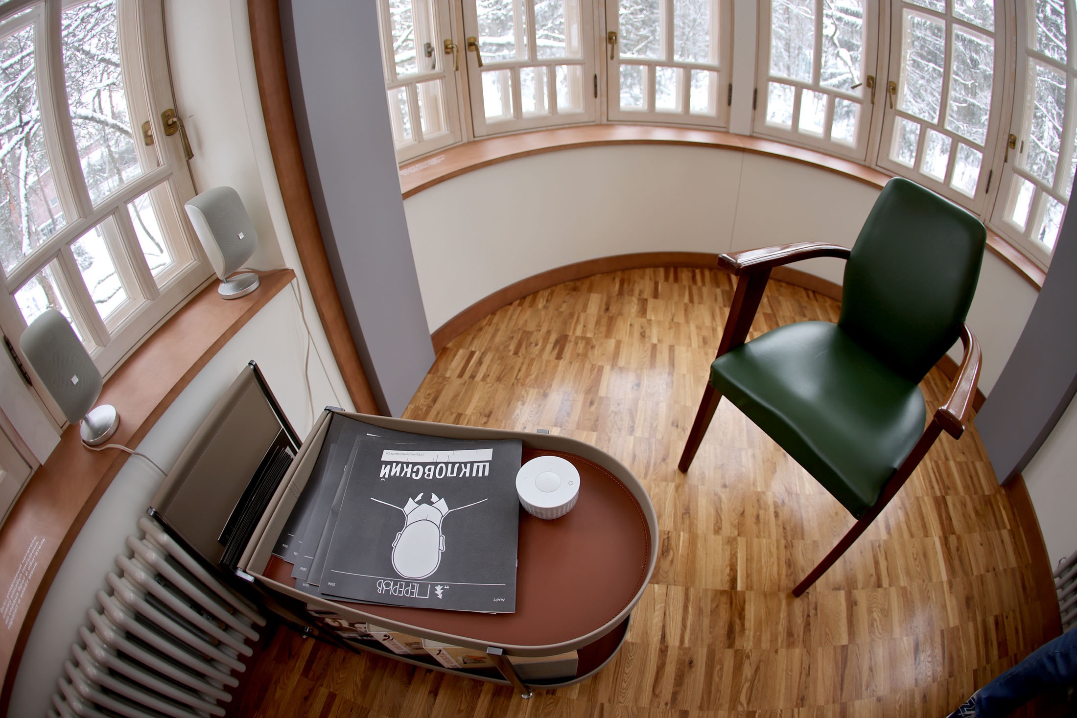 Рассказ о Шкловском продолжается в более камерных залах, где воссозданы комнаты исследователя литературы - комната с печью, спальня и кабинет. Небольшое пространство с буржуйкой - как напоминание о годах, когда топить приходилось книгами и даже мебелью. Здесь же сохранилась историческая стена дома, опаленная огнем, - свидетельство того, что на протяжении многих лет именно в этой части дома находилась печь. Примостившись в одном из кресел, можно послушать эпизоды из переписки формалистов - Виктора Шкловского, Юрия Тынянова и Бориса Эйхенбаума. Голоса потихоньку смолкают, остается лишь Шкловский - он пережил своих товарищей.