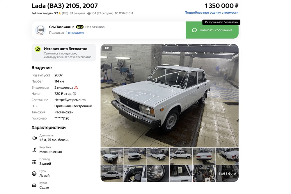 В РФ выставили на продажу новый ВАЗ-2105 2007 года выпуска без пробега