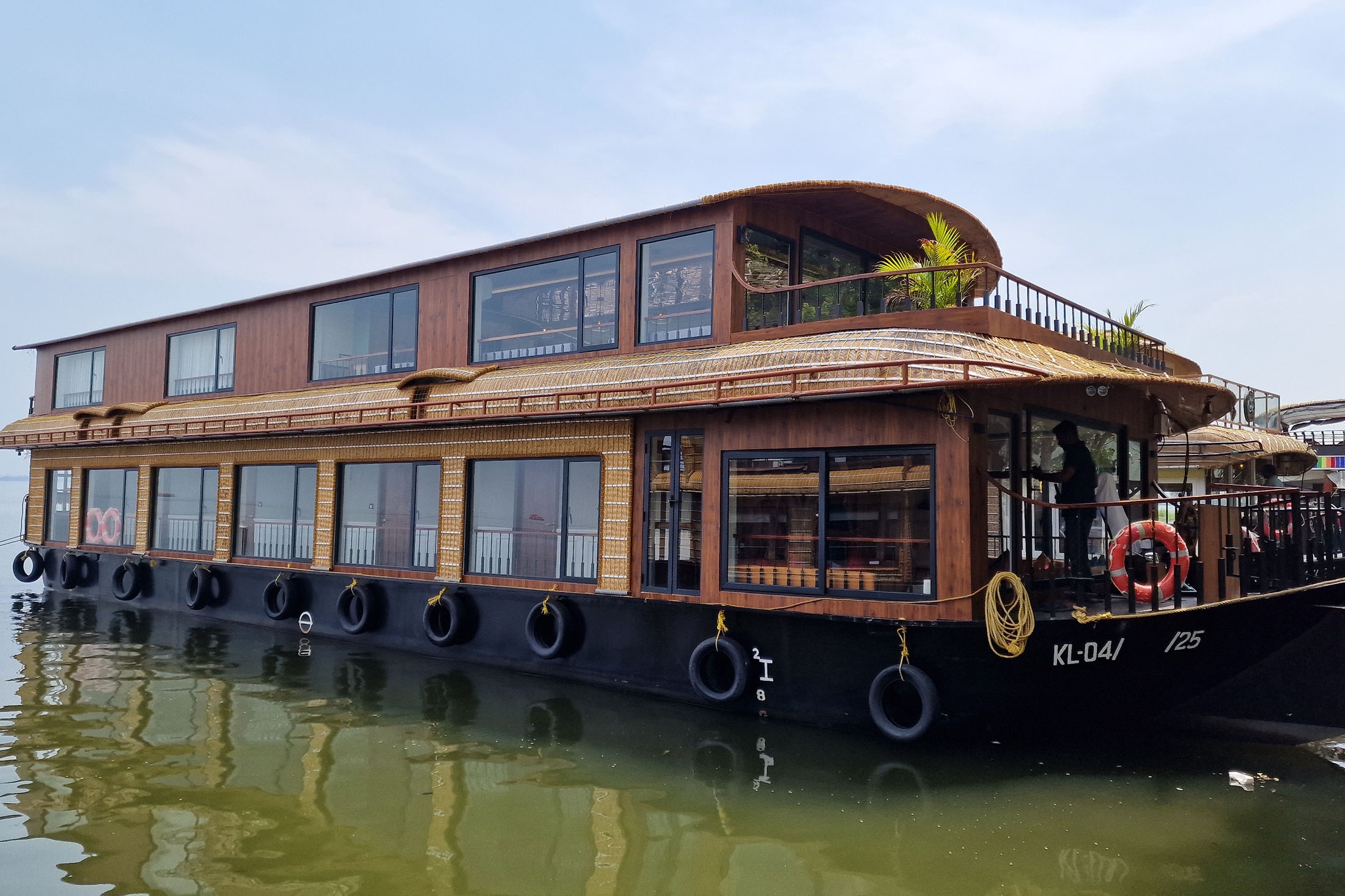 На хаузботе с причудливым названием Royal Queen ("Королевская королева"?) - два этажа и пять кают. Наверху - большая кают-компания и балкон для созерцания красот окружающей природы.