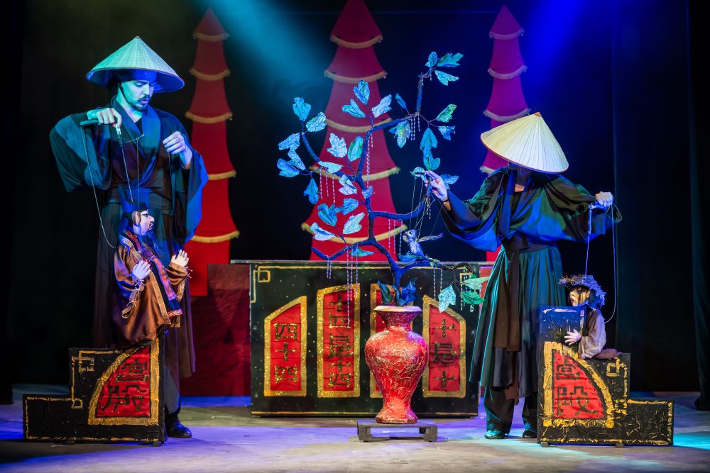А затем всех пригласили в зал - посмотреть сказку "Соловей", фрагмент спектакля "Сказки Андерсена" в постановке режиссера Алексея Уставщикова и художника Татьяны Мельниковой. И это было восхитительно, даже китайские гости не смогли удержаться от видеосъемок представления (на праздник пришли сотрудники консульства КНР в Санкт-Петербурге).